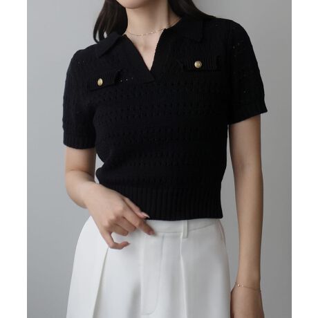 Louere スキッパー透かしあみポロニット