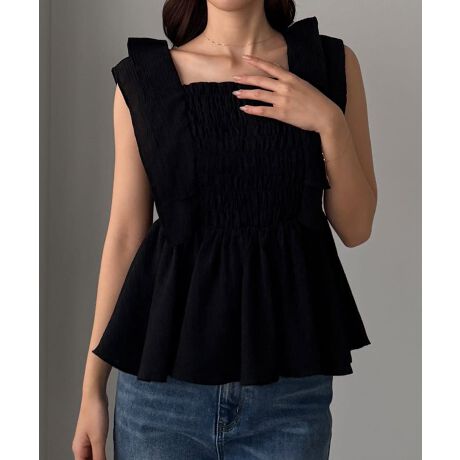 Louere フリルスリーブペプラム楊柳ブラウス