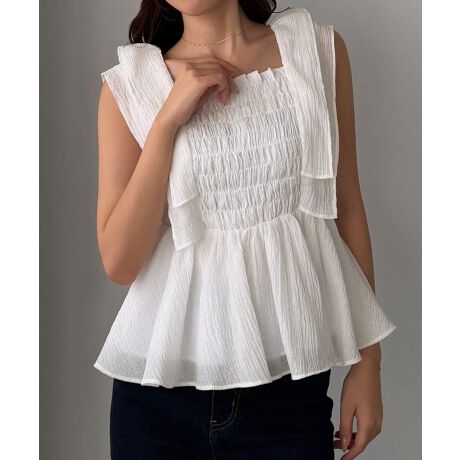 Louere フリルスリーブペプラム楊柳ブラウス