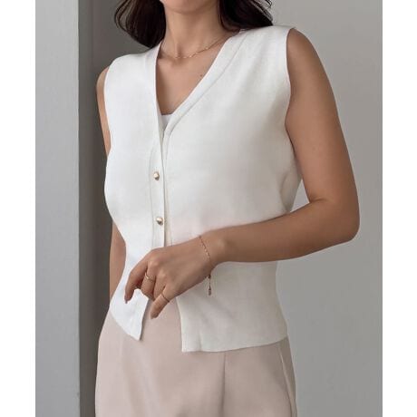 Louere 金ボタンウエストシェイプニットベスト