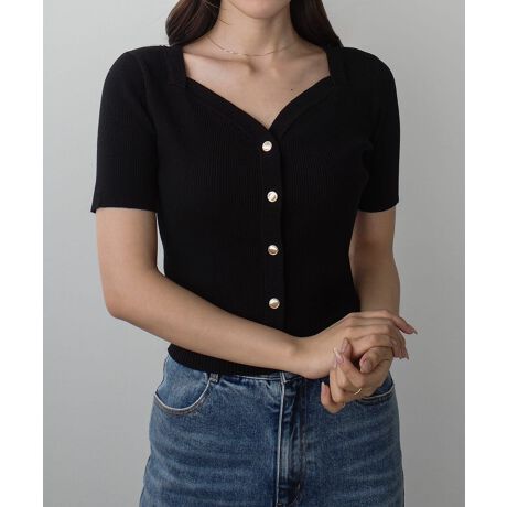 Louere ゴールドボタンリブニットトップス