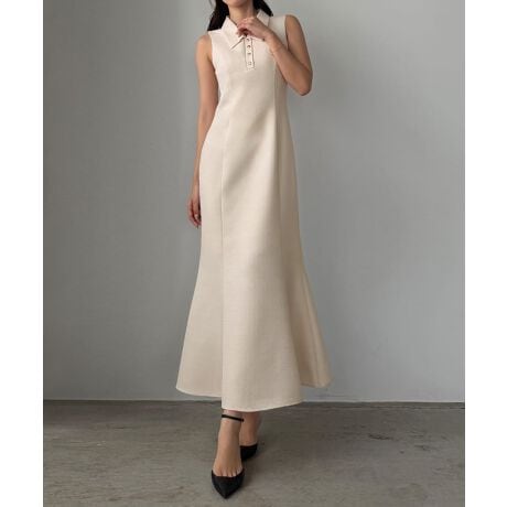 Louere 金ボタン襟付きノースリツイードマーメイドワンピ