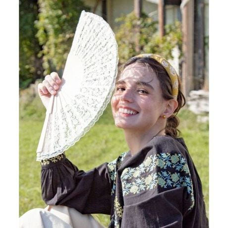 [型番:LCYP6601-2026]繊細なレースをあしらったレースの扇子。透け感のある布地が上品で涼しげな印象に。持ち運びに便利な袋付きです。