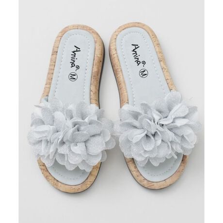 [型番:CSYP6102-2026]大きな花のモチーフが揺れるフラットサンダル。軽やかで気軽に履けるデザインながら、足元に華やかさをプラス。リゾートにもおすすめ。
