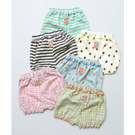 ふんわり丸みのあるシルエットに、ポップな総柄をのせたブルマです。