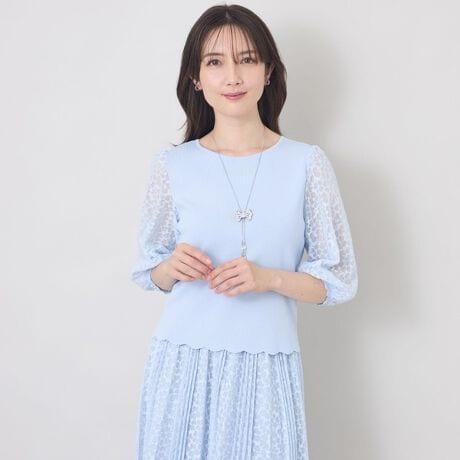 身頃はニット、袖にはレースを使用した異素材ドッキングデザイン。程よい華やかさがあり一枚でスタイリングが完成する、汎用性の高いアイテムです。