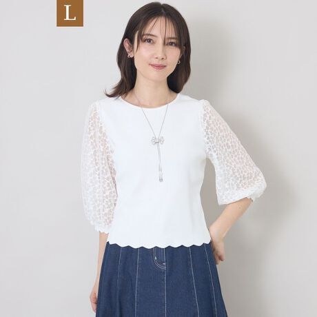 身頃はニット、袖にはレースを使用した異素材ドッキングデザイン。程よい華やかさがあり一枚でスタイリングが完成する、汎用性の高いアイテムです。