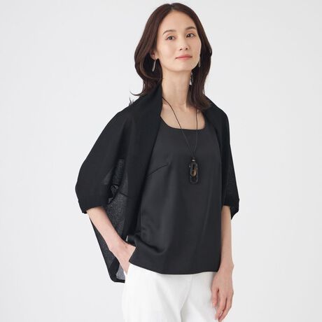 [型番:U1708745__]羽織ってリブから腕を出すとポンチョとして着ることができます。上下で編地を変えて表情をつけて、ワンピースの上でも、パンツの上でもマッチする汎用性の高いアイテムとなっています。