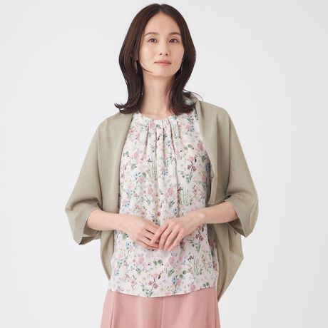 [型番:U1708745__]羽織ってリブから腕を出すとポンチョとして着ることができます。上下で編地を変えて表情をつけて、ワンピースの上でも、パンツの上でもマッチする汎用性の高いアイテムとなっています。