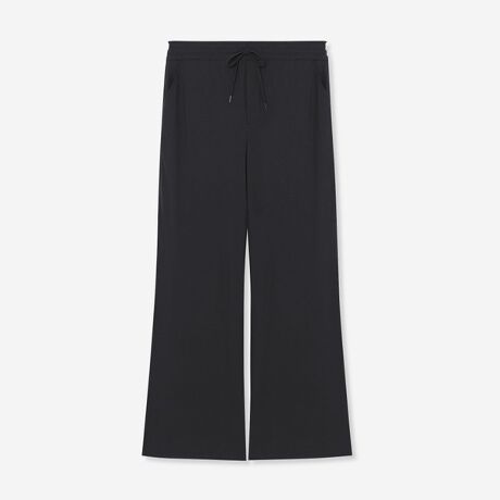 軽量で適度なハリがありサラサラとした風合いのトリコット素材です。ナチュラルなストレッチ性で動きやすく快適な着用感も特徴です。また、シワが目立ちにくくリラックス感がありながら、綺麗な見た目でエレガントな表情もあります。