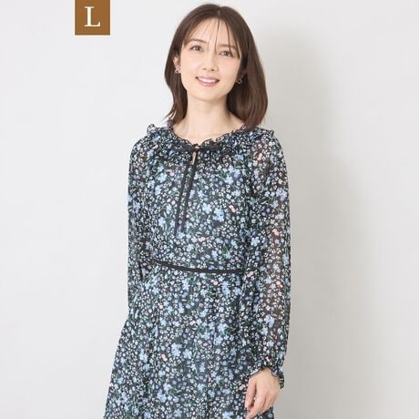 立体感のあるドットジャカード生地に、ヨーロッパの絵画を思わせる勿忘草(わすれなぐさ)のフラワーモチーフをプリント。ポリエステル素材ならではの美しい落ち感があり、シワになりにくく、デイリー使いからお出掛けまで幅広いシーンで活躍します。
