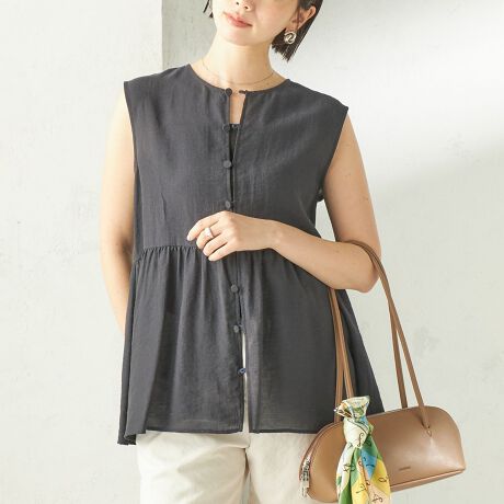 《予約》〈手洗い可能〉シルク混 シアー 2WAY ノースリーブ ブラウス