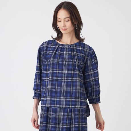 【ウォッシャブル】シアーチェックプリントブラウス
