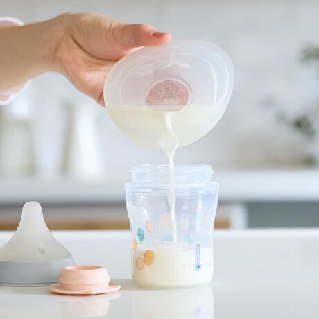 ほ乳びんに沿わせて傾けるだけで、スムーズに移せます。