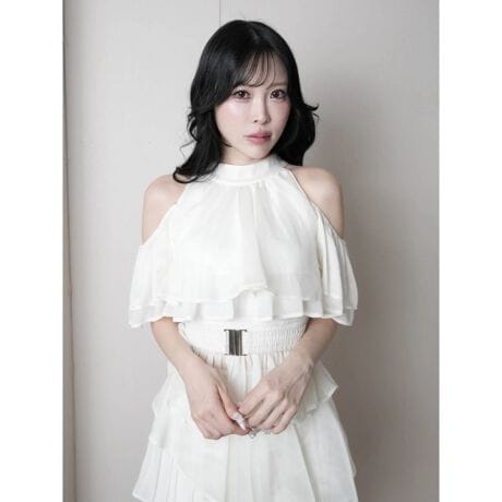 ・肩が見えるデザインで、抜け感のある大人フェミニンな雰囲気をプラス。