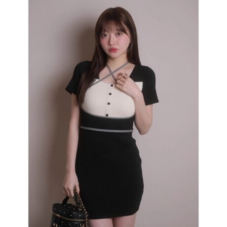 チェックパイピングタイトワンピース
