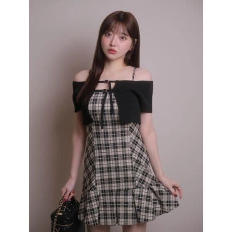 ・ミックス1はボレロがブラック、ワンピースがベージュベースのチェックでトレンドライクな雰囲気。