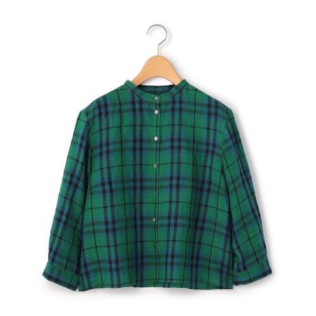 大人トラッドな着こなしをかなえてくれる、チェック柄のシャツです。肌にさらっと心地よく着られる素材、バンドカラーが顔まわりをすっきりと見せてくれます。ロングシーズン着まわせる7分袖、1枚で着るのはもちろん手持ちのTシャツやキャミソールの上から羽織ったレイヤードスタイルもおすすめです。