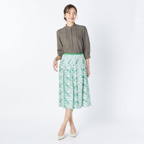 立体感のあるジャカード素材で、遠目にも華やかに着られるスカートです。同色のグラデーションで仕上げたボタニカル柄がこれからの季節にぴったり、ウエスト部分の配色切り替えがさりげないアクセントをきかせます。カラバリによって雰囲気が変わるのも魅力、アイテム次第できれいめにもカジュアルにも着まわせるアイテムです。