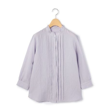 ほど良いハリ感と上品な光沢感をあわせ持つ、ラミー素材で仕上げたシャツです。吸水性や通気性もよく、汗をかいてもすぐに乾いて快適、肌にさらっと心地よく着られます。衿元のフリルと胸元のタックプリーツで大人可愛くおめかし、折り返しても着られる手首がのぞく袖丈でロングシーズン着まわせるのもうれしいポイントです。