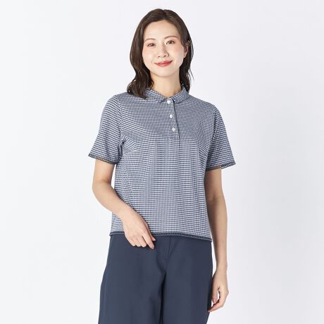 トレンド顔な着こなしをかなえてくれる半袖のポロシャツです。コーディネートに馴染みやすい小さめのギンガムチェック柄がポイント、可愛くなり過ぎない大人のカジュアルスタイルをかなえてくれます。伸縮性に優れたジャージ素材で着心地も快適、これからの季節にさらっと心地よく着られる通気性にもすぐれたアイテムです。
