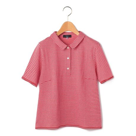 トレンド顔な着こなしをかなえてくれる半袖のポロシャツです。コーディネートに馴染みやすい小さめのギンガムチェック柄がポイント、可愛くなり過ぎない大人のカジュアルスタイルをかなえてくれます。伸縮性に優れたジャージ素材で着心地も快適、これからの季節にさらっと心地よく着られる通気性にもすぐれたアイテムです。