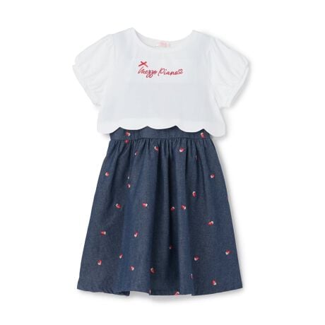 裾スカラップ半袖Tシャツ&イチゴキャミワンピースセット