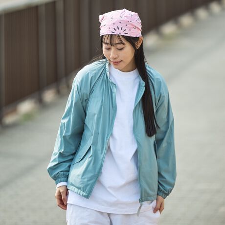 風合いが柔らかく肌触りの良いハイマルチフィラメント生地を使用した軽量防風ブルゾン。ボリューム感のある袖口と着膨れして見えないボディのバランスが特徴です。フードは取り外すこともでき、ノーカラーでの着用も可能です。