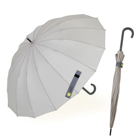 男女問わずお使いいただけるシンプルなデザインとカラーリング。丈夫でしっかりとした16本骨の構造になっています。