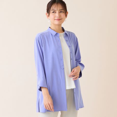 パンツスタイルを品良く着こなせる快適素材のシャツです。