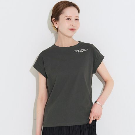 さりげない上品さをプラスする、フレンチスリーブ刺繍Tシャツ