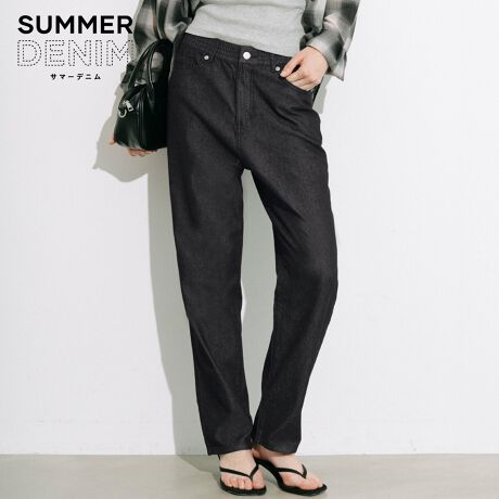 すっきりとしたシルエットで着回しやすいサマーデニムテーパードパンツ