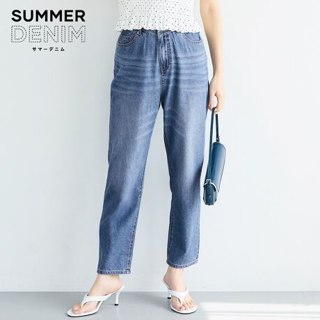 すっきりとしたシルエットで着回しやすいサマーデニムテーパードパンツ