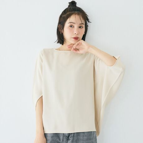 落ち感のある素材で上品に着こなす、とろみツイルスクエアブラウス
