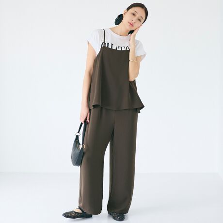 すっきりとした縦ラインが魅力のキャミソールオールインワン