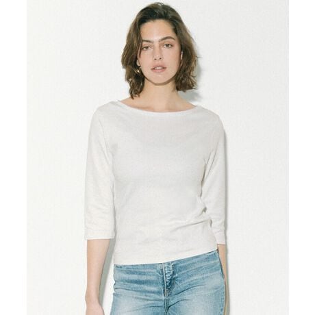 なめらかな着心地が魅力の、7分丈ボートネックスムーストップス