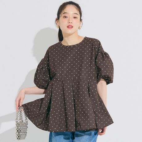 ふんわりとしたボリュームスリーブが目を引く、女性らしいブラウス。