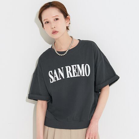 カラーごとに異なるロゴデザインが目を引く、ミニ裏毛素材の半袖トップス。