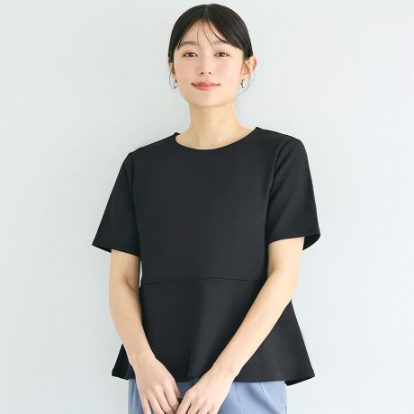 裾に向かって広がるペプラムシルエットが女性らしい印象のブラウス。