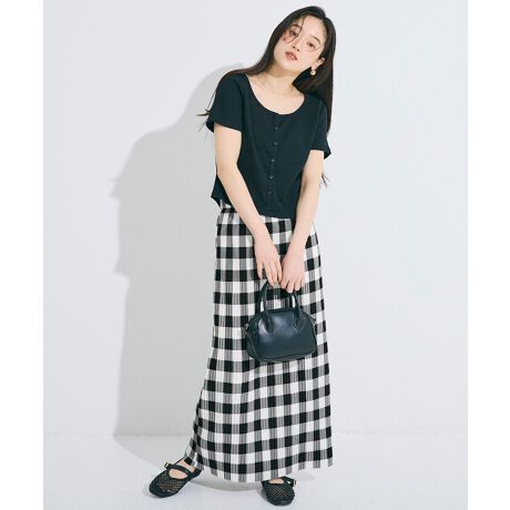 柄がアクセントになり、シンプルなトップスとも相性の良いスカートです。