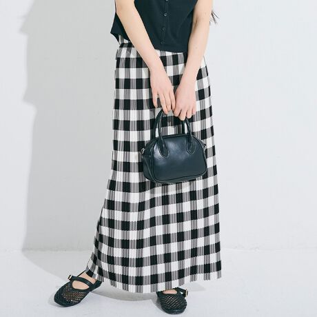 ランダムプリーツが縦のラインをきれいに見せてくれるIラインスカート。