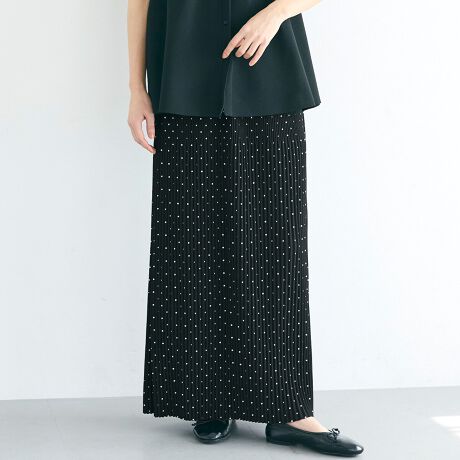 ランダムプリーツが縦のラインをきれいに見せてくれるIラインスカート。