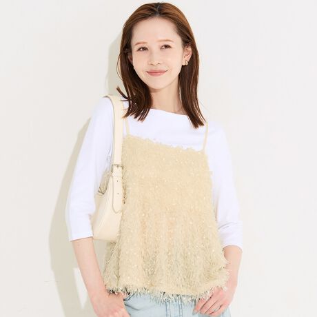 毛足のあるシャギー素材が目を引くキャミソールトップス。