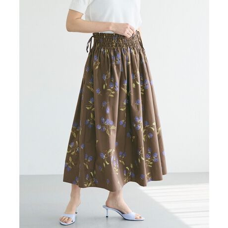 鮮やかなフルーツプリントが目を引くフレアスカート。