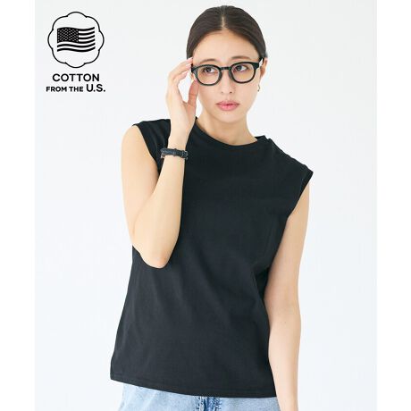 シンプルで着回し力抜群のコットンノースリーブシャツ