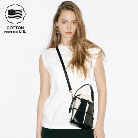 シンプルで着回し力抜群のコットンノースリーブシャツ