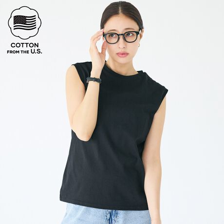 シンプルで着回し力抜群のコットンノースリーブシャツ