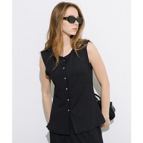 金ボタンが映える上品見えしぼウェーブボタンベスト