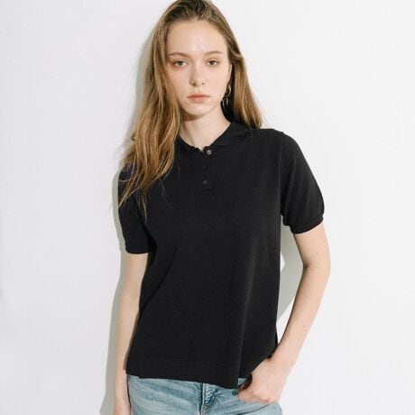 ポロ襟デザインがポイントのニットトップス。