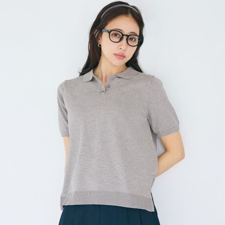 ポロ襟デザインがポイントのニットトップス。